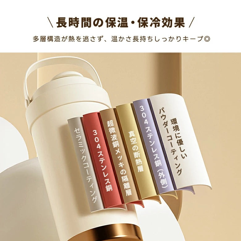保温は約3時間、保冷は約6時間持続します。氷を多めに入れることで、さらに長く冷たさをキープできます