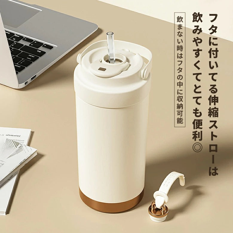 外で持ち歩くとさすがに氷も溶けますが、冷房下では、冷たいまま1日使えます。ストロー付きなので、どこでも気軽に水分補給できるが夏には嬉しいです。大容量を選んだのですが、持ち歩きの重さを考えると500mlでも良かったのかなぁと思います。