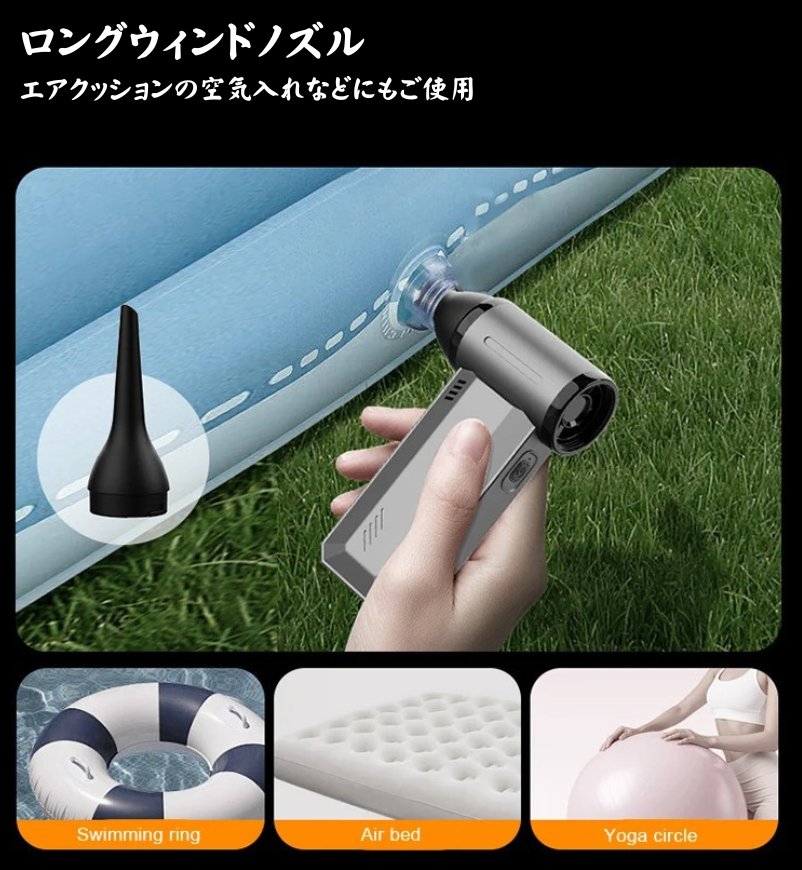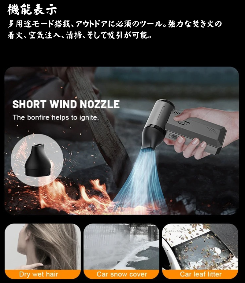 130,000RPMのブラシレスモーターが生み出す 最大80m/sの風速 は、まさに業務用レベルのパワー!しかも8000mAhの大容量バッテリーで、最大60分の連続使用が可能。ペットの乾かしや、アウトドアでのエアポンプ代わりにも大活躍!